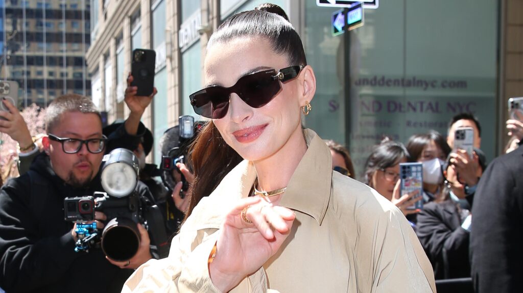 Näyttelijä Anne Hathaway edusti upeana elokuvan ensi-illassa.