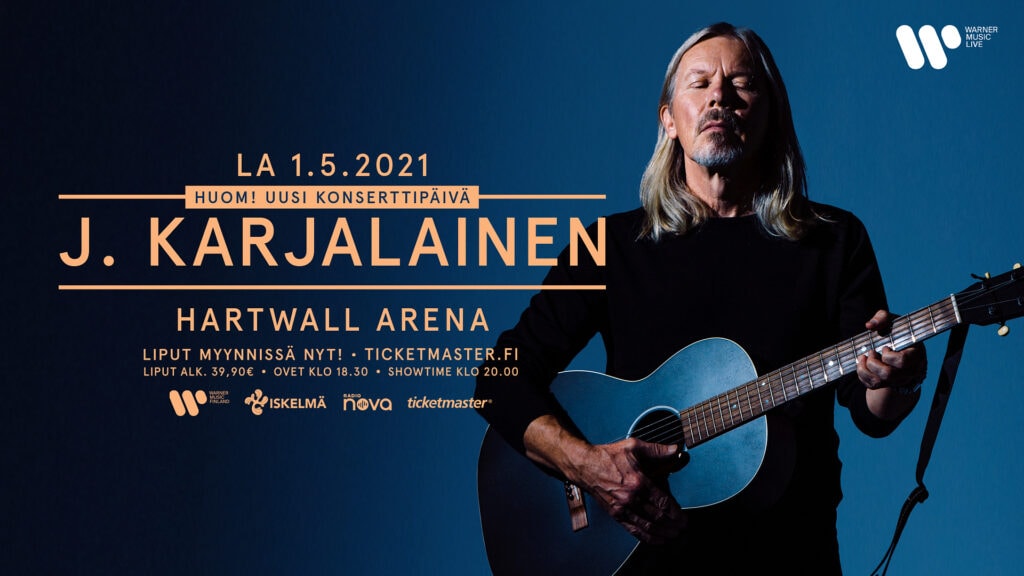 Laulaja-lauluntekijä J. Karjalainen esiintyy Hartwall Arenalla ensi vuoden vappupäivänä. Jo ostetut liput kelpaavat sellaisenaan uuteen päivämäärään.
