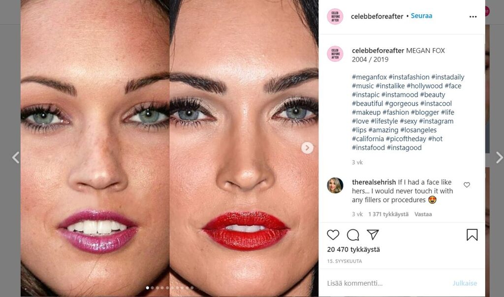 Lukuisat tilit julkaisevat julkkiksista äärimmäisen käsiteltyjä kuvia Instagramissa. Fanit ovat kiinnittäneet asiaan huomiota, mutta jotkut vaikuttajat jakavat heistä tehtyjä editoituja kuvia silti.