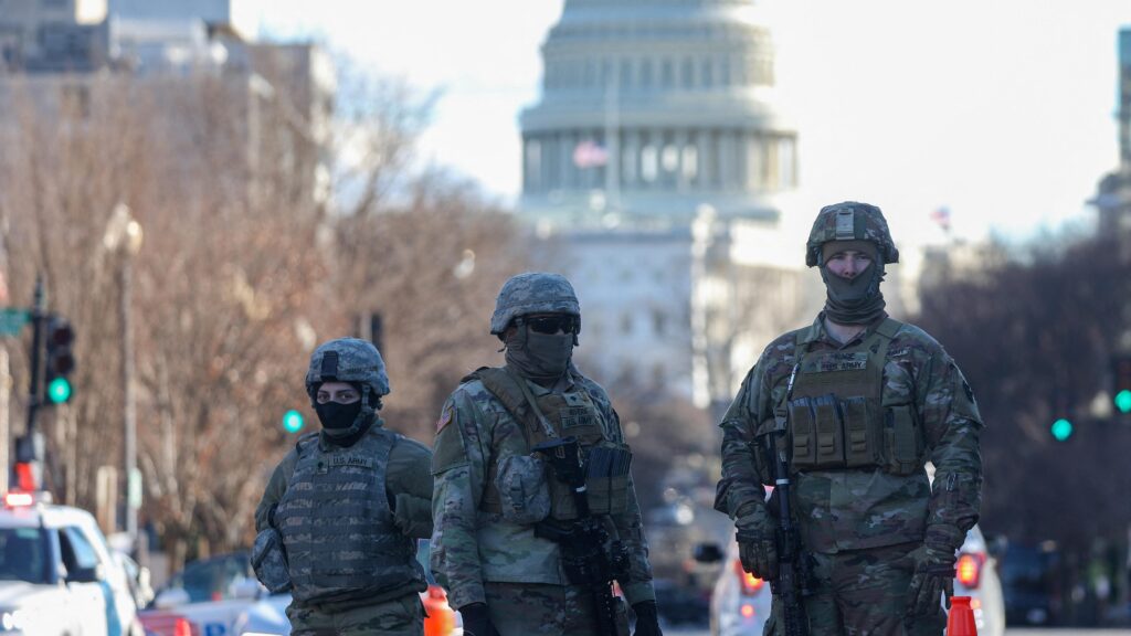 Suomi mainittu! Merijalkaväen orkesteri soitti Finlandiaa osana virkaanastumisjuhlaa.