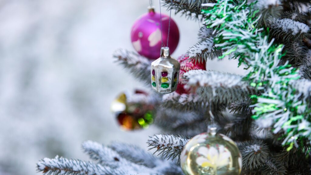 Kun pituus ei ihan riitä, saattavat kuusenkoristeet jäädä pelkästään alemmille oksille.