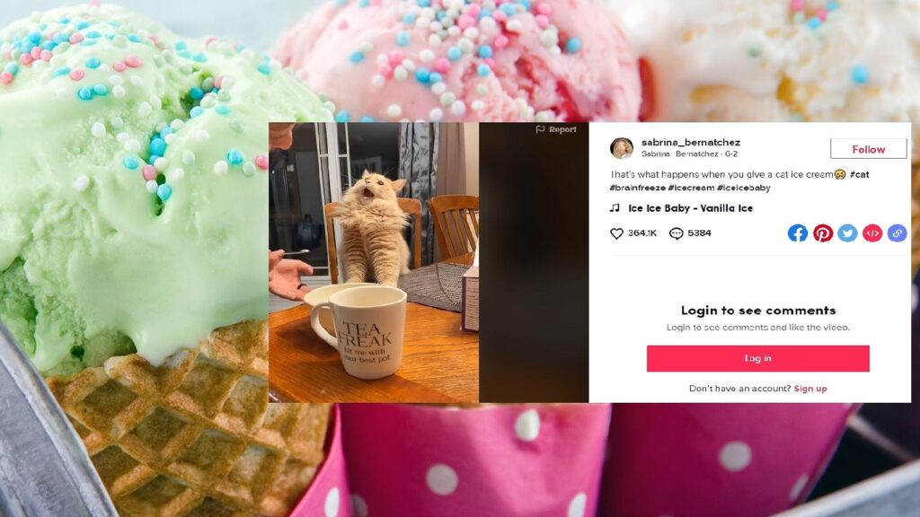 Hitiksi nousseella TikTok-videolla kissa lipaisee jäätelöä mutta ei selvästikään pidä maistamastaan.