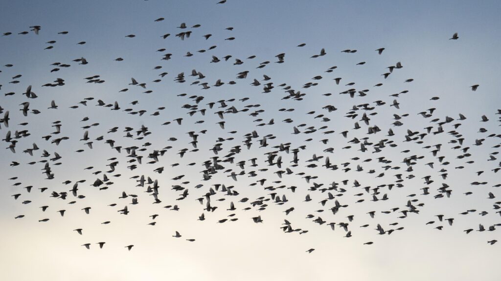 Parvilintuna tunnetut kottaraiset esittelevät lentotaitojaan, jotka tallentuivat videolle.