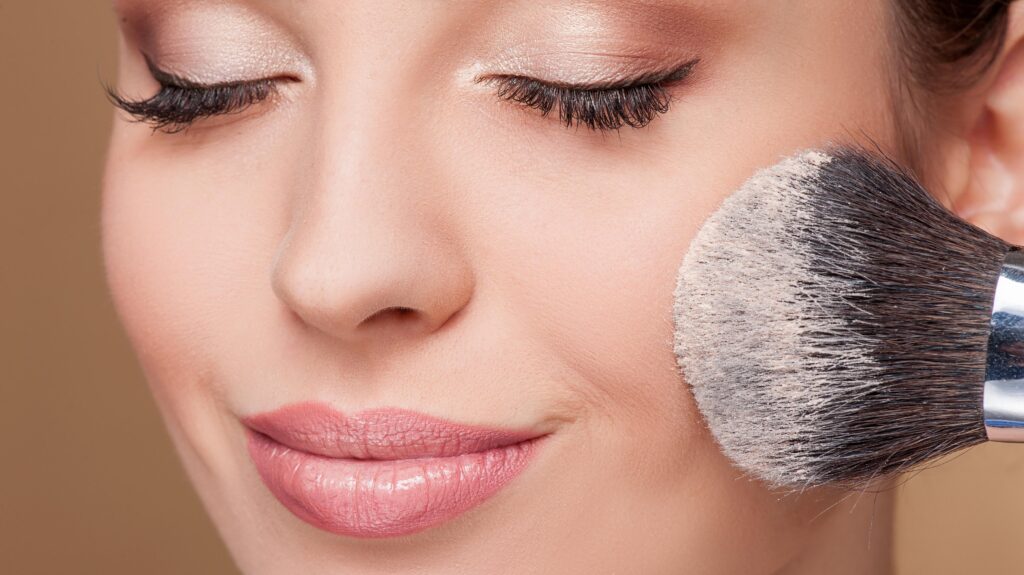 Nestemäisen meikkivoiteen lisäksi tarvitset irtopuuterin.