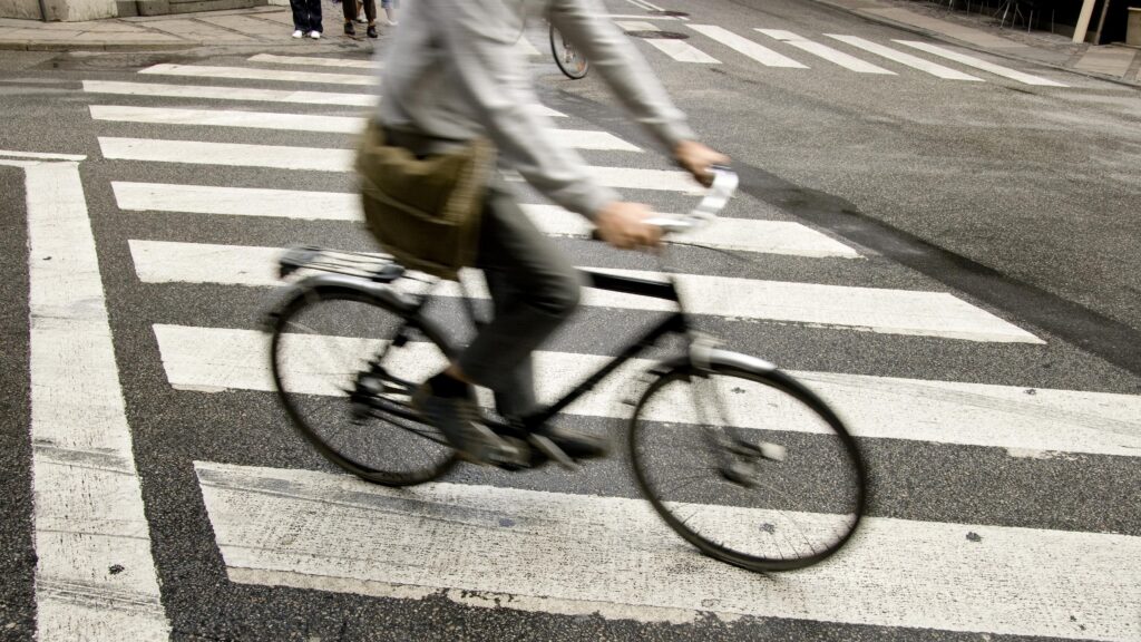Islantilainen mies pyöräili kaupungilla ilman rihman kiertämää, tarkoituksenaan saada autoilijat valppaiksi pyöräilijöitä kohtaan.
