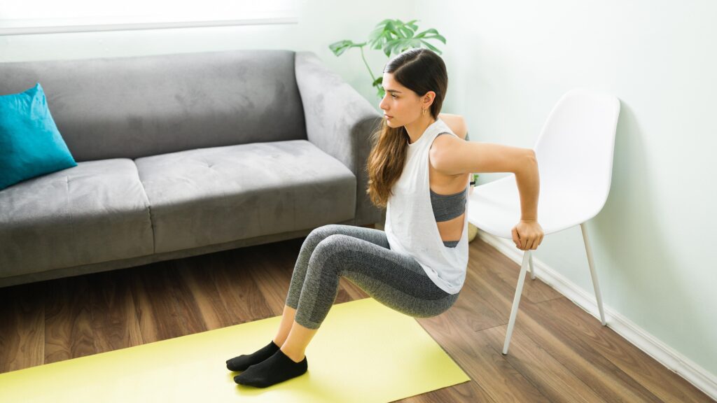 Tarvitset avuksesi käsipainot sekä tuolin.