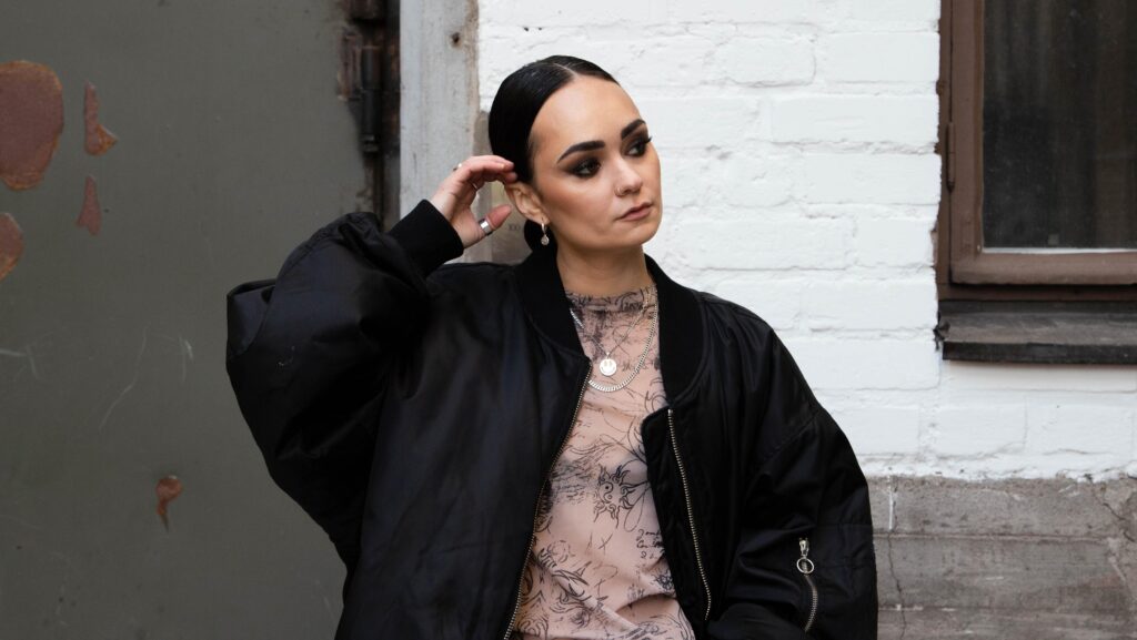 Artisti Sini Yasemin pukeutuu tarkoituksella ylisuuriin kenkiin ja rakastaa etenkin nahkatakkeja.