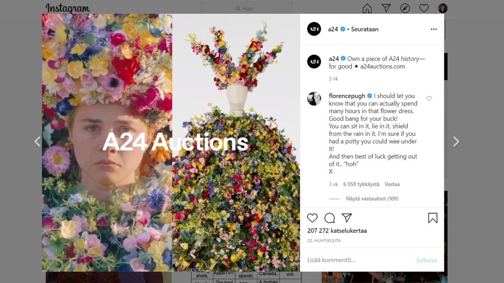 Florence Pughin yllä Midsommar-kauhuelokuvassa nähdystä mekosta sai pulittaa sievoisen summan.