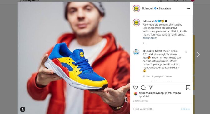 Ja niin kävi myös Suomessa. Kun ilmoitus kenkien saapumisesta myös Suomen kauppoihin tuli, sekosi some heti ja kiinnostus Lidl-lenkkareita kohtaan nousi heti taivaisiin.