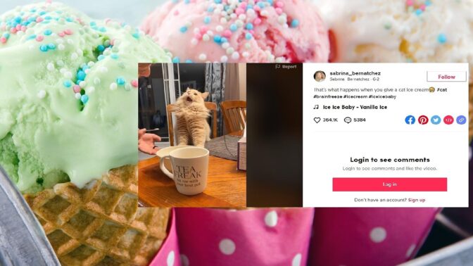 Jäätelö on kesäherkku ihmisille vailla vertaa, mutta kissat eivät kylmästä syötävästä välttämättä nauti. Tämä käy ilmi viraaliksi menneellä TikTok-videolla, jonka Sabrina Bernatchez on jakanut. Kyseisellä videolla kissalle syötetään pikkuinen annos jäätelöä, ja heti jäätelöä lipaistuaan kissalla tapahtuu niin sanottu ”aivojen jäätyminen”.