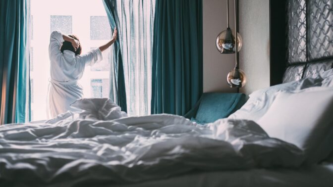Hän muun muassa vinkkaa, että petivaatteet kannattaisi ottaa pois ennen lähtöä. Ne olisi myös hyvä jaotella tietyllä tavalla. Tämän lisäksi hän kehottaa nappaamaan huoneen roskikset samaan paikkaan, esimerkiksi oven lähettyville.