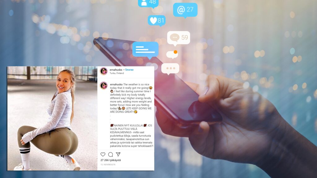 Suomalainen fitnesstähti ja hyvinvointivalmentaja Erna Husko on kerännyt sometileilleen yli miljoonapäisen seuraajajoukon. Pelkästään Snapchatissa häntä seuraa 1,2 miljoonaa seuraajaa. Kuvien keskiössä on Huskon takapuoli.