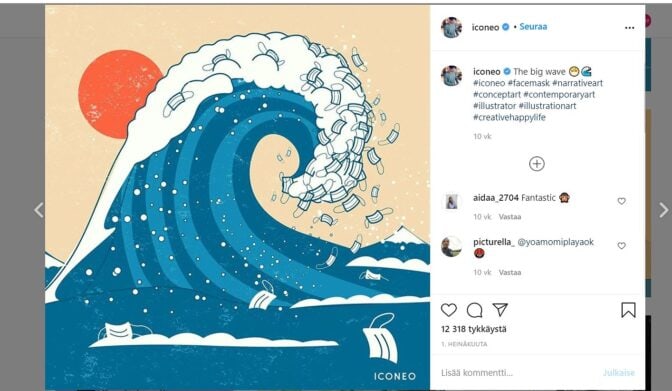 Ei siis ole ihme, että pandemia näkyy jollain tavalla myös taiteessa. Saksalainen taiteilija Steffen Kraft on julkaissut omalla Instagram-tilillään taideteoksia, jotka ovat inspiroituneet pandemiasta, etenkin kasvomaskeista.