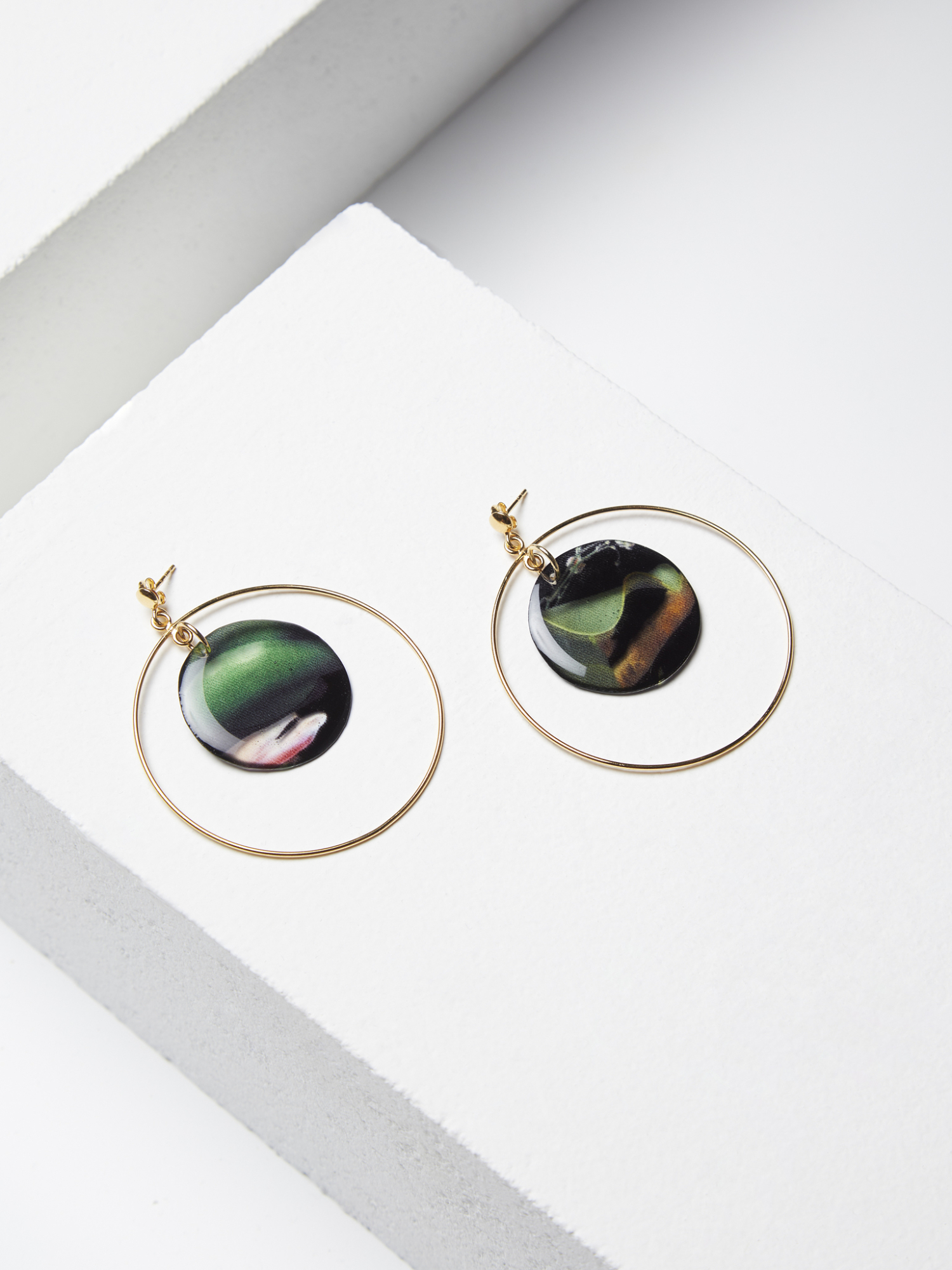 Korujen ystävälle hyvä lahja on suomessa valmistetut Uhanan Rose Earring -korvakorut. Materiaalina koruissa on100% silkki & epoksi sekä kullattu aito hopea.