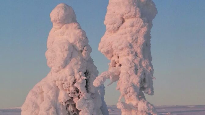Tunturilla olleet kaksi puuta olivat saaneet lumivaipan ylleen. Oikeasta kulmasta vilkaistuna katsoja sai kuitenkin hieraista silmiään, sillä lumimuodostumassa vaikuttaa olevan jotain kaksimielistä.