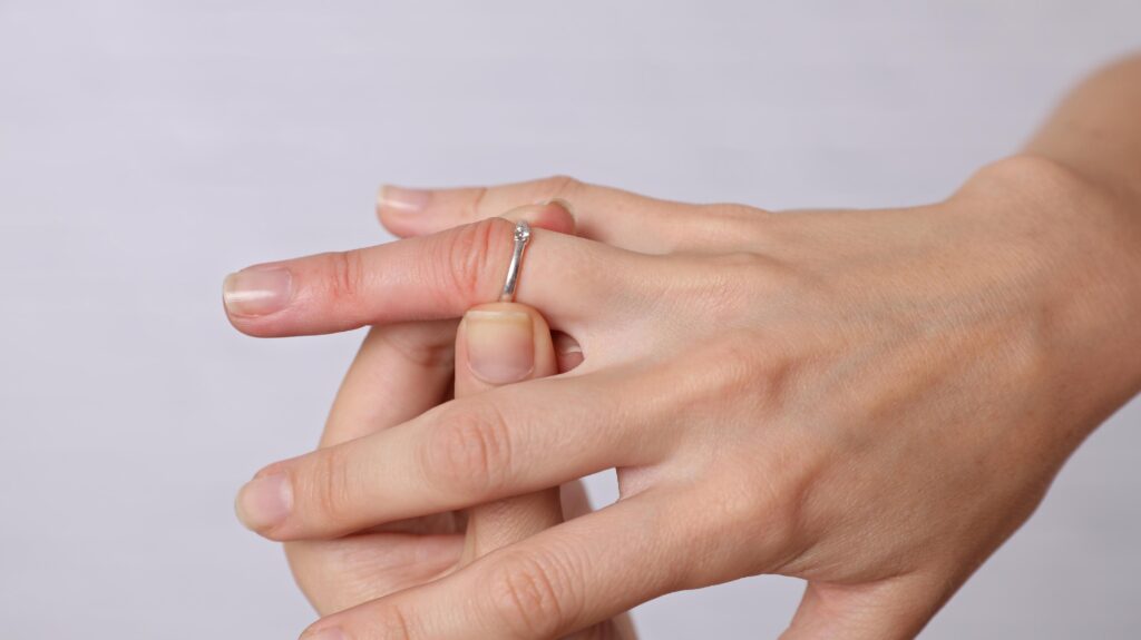 Sormus saattaa jumittua sormeen yllättävän tiukasti. Jos niin pääsee käymään, ei kannata vielä menettää malttiaan.