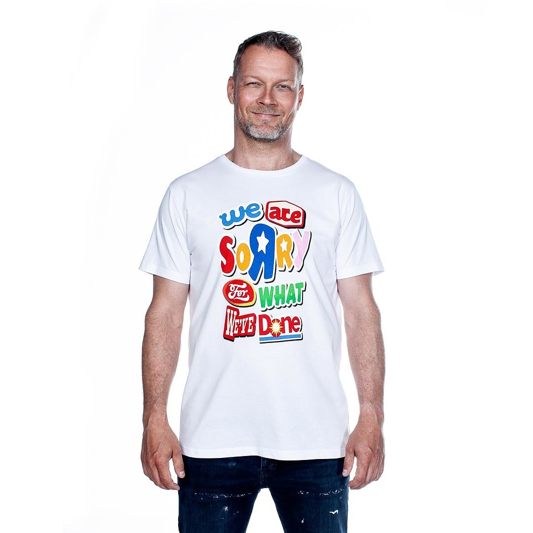 Taiteilija näkee myös tehokkaana vaikuttamisen keinona laittaa yritysten logot sanomaan jotakin, mitä ne tavanomaisesti eivät sanoisi. Leinosen suunnittelemat t-paidat näyttävät alkuun kepeiltä ja värikkäiltä, mutta viestit ovat painokkaampia. Paitoja tulee myyntiin kolmella erilaisella sanomalla.