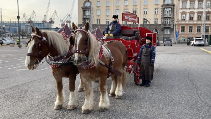 – Olutkuljetuksia ei tosin hevosilla ole tehty varmaan 30 vuoteen. Terveisiä ajetaan nykyään, kertoo Sami Lappalainen, toinen panimohevosten ajureista.