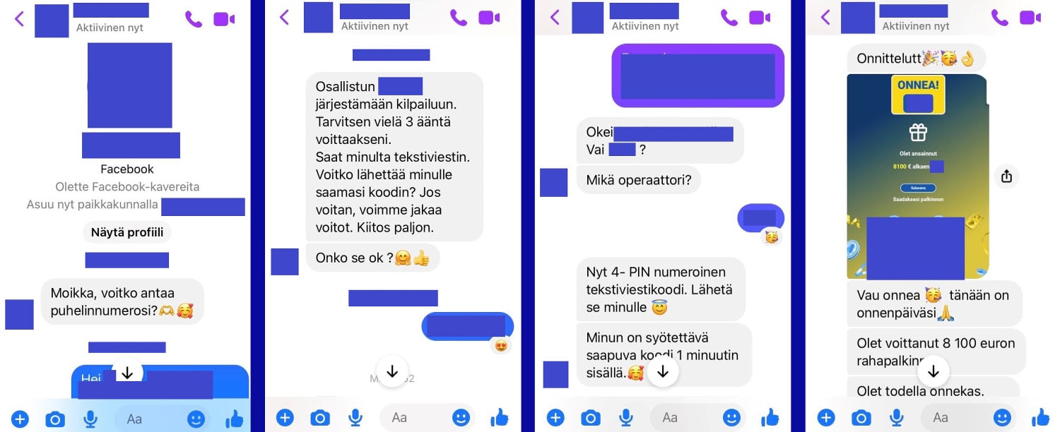 Länsi-Uudenmaan poliisin tutkintaan tuli alkukesästä yksi arvontahuijaus, jossa uhri menetti 3500 euroa. Poliisi tutkii tapausta maksuvälinepetoksena. Poliisi julkaisi tiedotteen mukana myös kuvan kyseiseen huijaukseen liittyvästä keskustelusta. Näet sen alta.