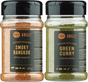 Takaisinveto koskee seuraavia tuotteita: Herkku Grills Green Curry –kuivamausteseos EAN-koodi 6430022150829 ja pakkauskoko 210 g, jonka parasta ennen päivä on 13.3.2028 sekäHerkku Grills Smoky Bangkok –kuivamausteseos EAN-koodi 6430022150843 ja pakkauskoko 230 g, jonka parasta ennen päivä on 12.3.2028.