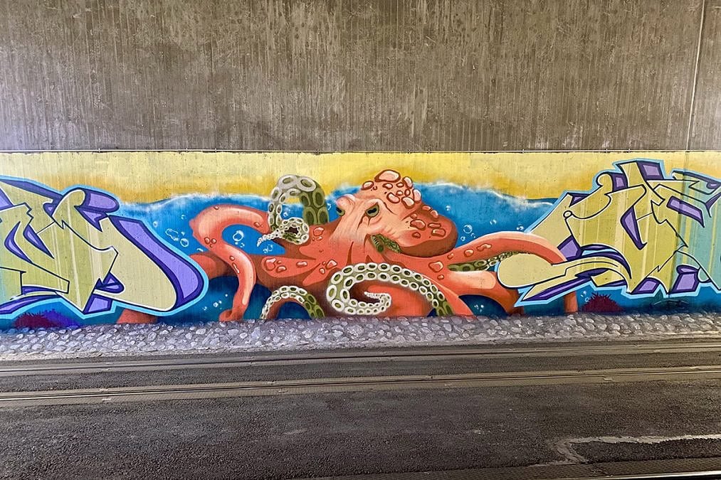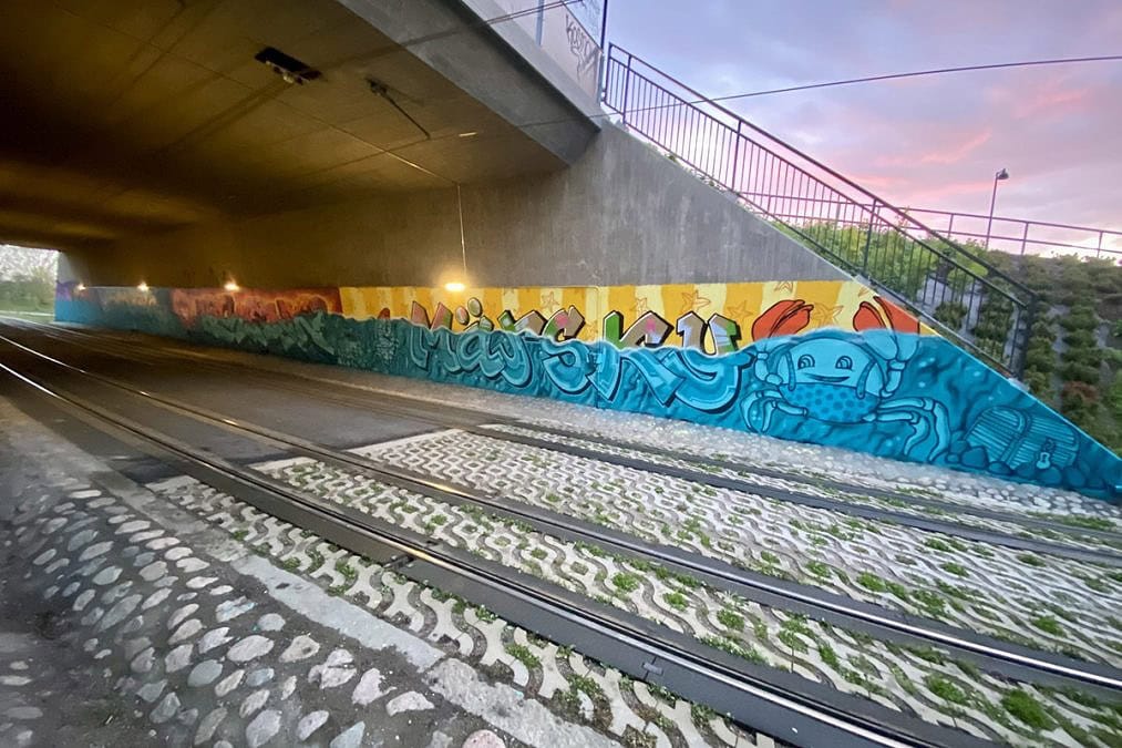 Kaupunkiliikenne Oy ja Helsingin kaupunki toteuttivat näyttävän katutaideteoksen raitiolinjan tunneliin yhteistyössä Helsingin kaupungin nuorisopalveluiden katutaidetoimiston kahden nuoren sekä neljän ammattitaiteilijan kanssa.