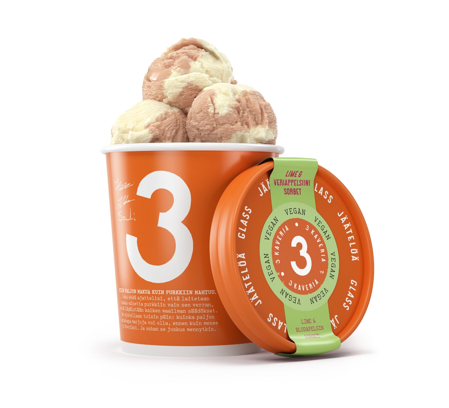 Lime & veriappelsiini sorbet, 3 Kaveria (vegaani)