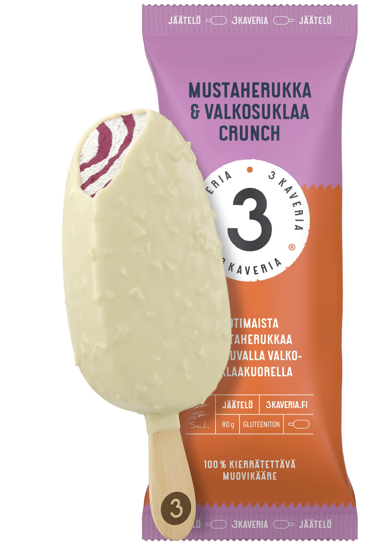 Mustaherukka & valkosuklaa crunch, 3 Kaveria