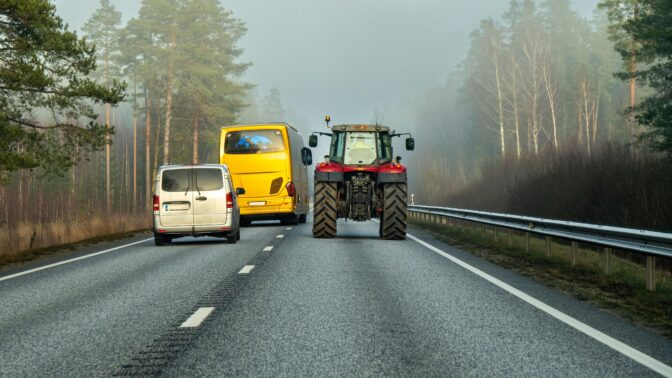 Loppukesällä liikenteessä näkyy runsaasti maataloustyökoneita. Ne liikkuvat hitaammin ja vievät enemmän tilaa, mutta ohituskieltoalueella niiden ohittaminen on silti kielletty.