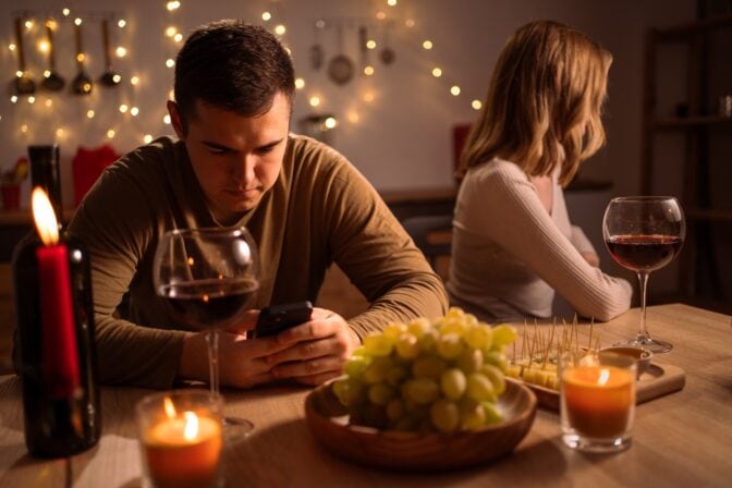 Puhelimen jatkuva vilkuilu kesken treffien on noussut yhdeksi suurimmista modernin parisuhteen romantiikantappajista. Phone snubbing -ilmiö tarkoittaa sitä, että kumppani on fyysisesti läsnä, mutta henkisesti uppoutunut someen.