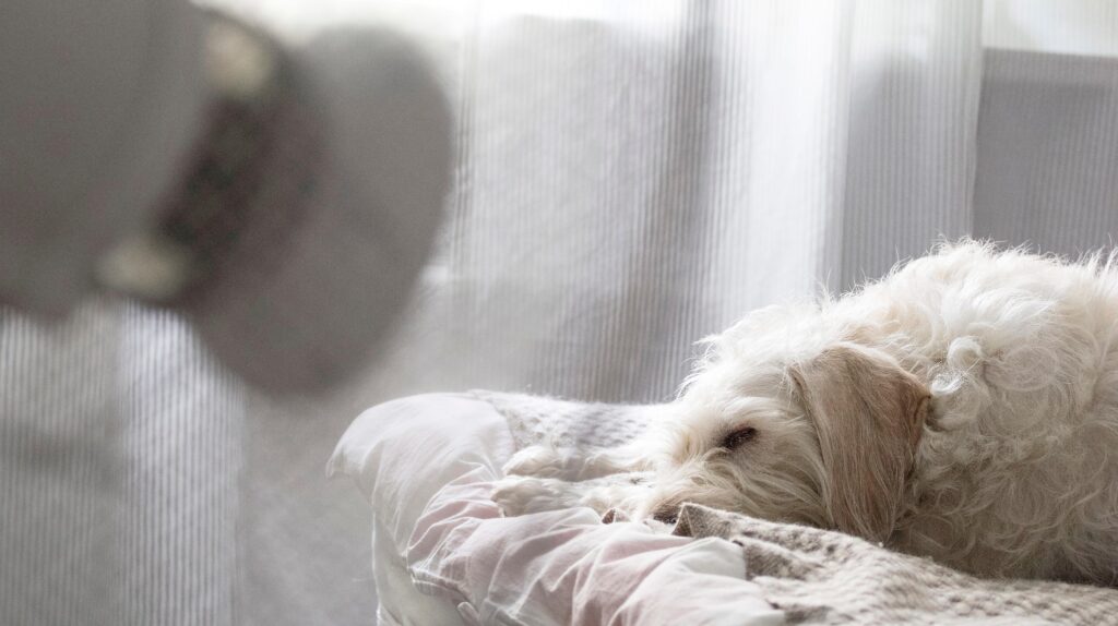 – Jos ilmastointilaitetta ei ole, on myös tuulettimesta tai läpivedosta apua, sillä liikkuva ilmavirta poistaa lämpöä myös keholta. Lisäksi viileät/viilentävät makuualustat helpottavat oloa. Roduilla, joilla on tiheä alusturkki, voi turkin ajelusta olla hyötyä.