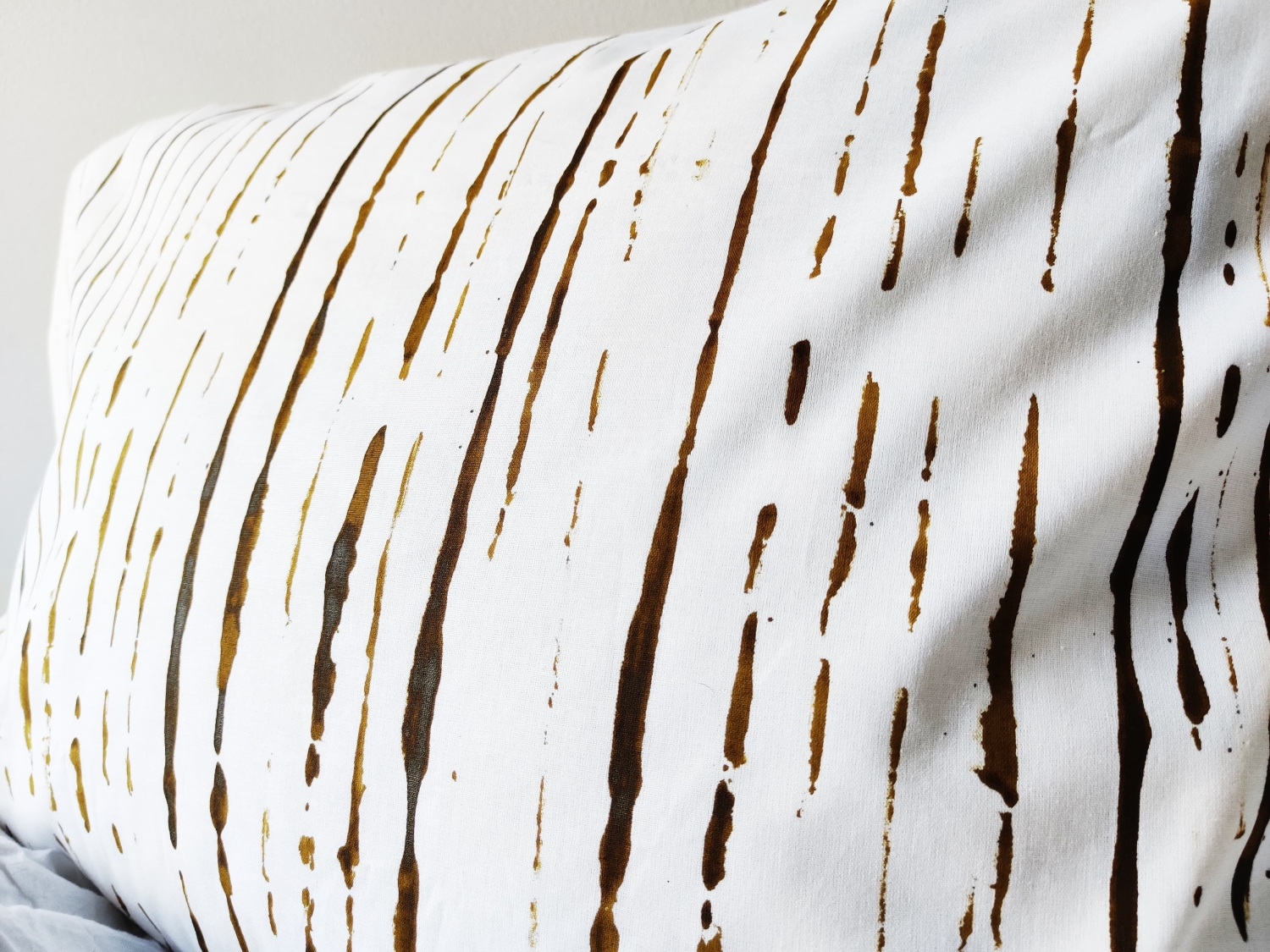Voit kokeilla tätä painamistyyliä myös ristikkäin, ei pelkästään vieretysten. Kokeile rohkeasti eri väriyhdistelmiä, jos olet värikkään ystävä. Myös mustaan tyynyliinaan voi saada eloa painamalla siihen valkoisia koristekuvioita.