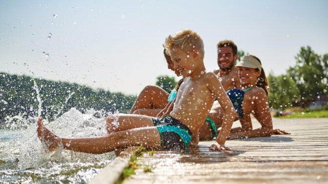 – Lapsi tulee pitää koko ajan itsensä ja rannan välissä, jolloin voi varmistua, ettei pienokainen pääse karkaamaan. Varmista myös, että paikka on turvallinen uida ja hypätä. Uimataitoisella lapsella, ja aikuisellakin, voimat voivat loppua yllättäen, jolloin avun on oltava lähellä.