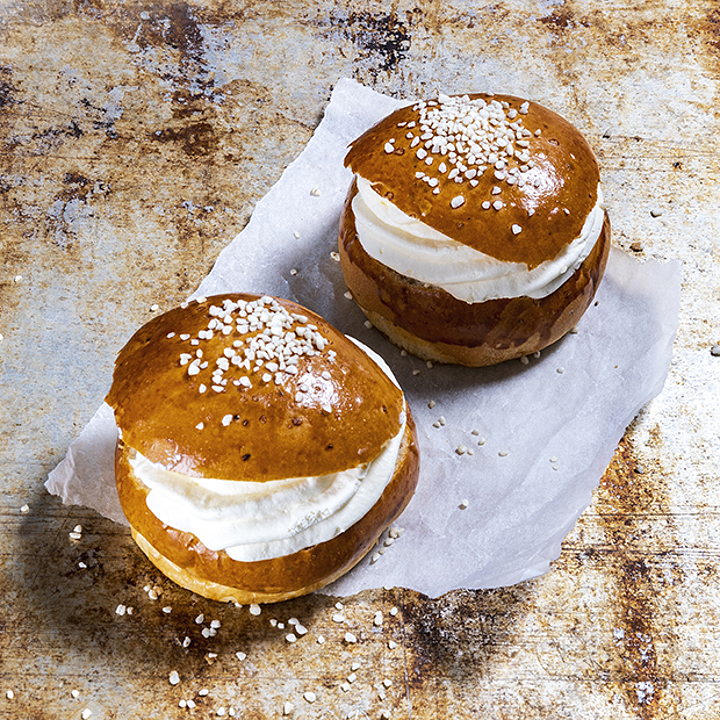 Tämä pulla oli raadin ehdoton suosikki! Toimitus kuvaili tätä muun muassa ”hävyttömän hyväksi”. Tuote on täydellinen yhdistelmä raesokerin päällystämää pehmeää pullaa, ilmavaa kermavaahtoa ja makeaa hilloa. Monet laskiaispullat on täytetty mansikkahillolla, mutta tässä on käytetty vadelmaa ja sehän sopi raadille. Hillossa on makeutensa lisäksi mukavaa kirpeyttä, joka luo entisestä herkullisemman kokonaisuuden. Toki täytyy muistaa, etteivät vadelmahillossa olevat pienet siemenet toki ole kaikkien makuun. Ulkonäöltään pulla on houkuttelevan ja kotitekoisen näköinen ja kokonaisuus on ehdottomasti testin tasapainoisin.