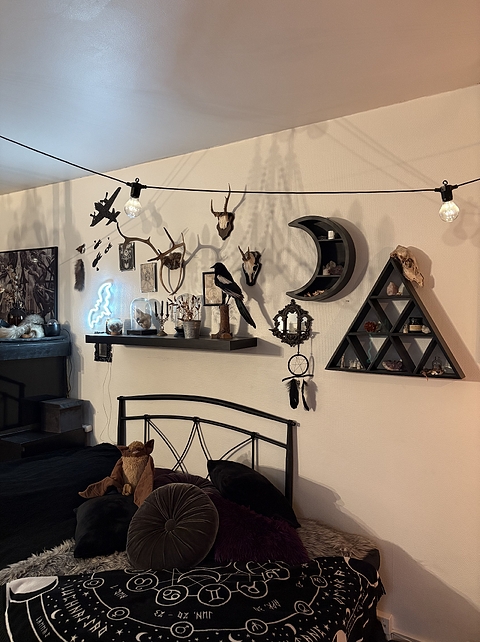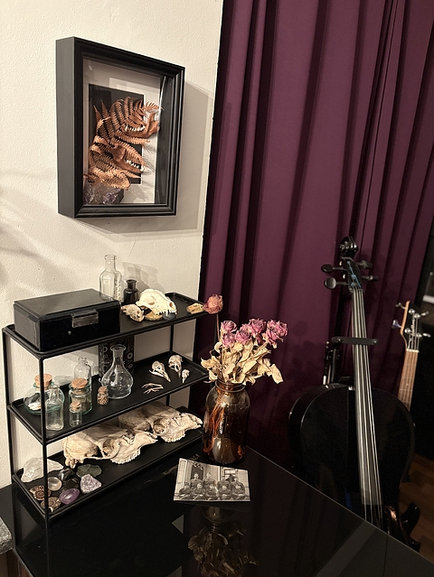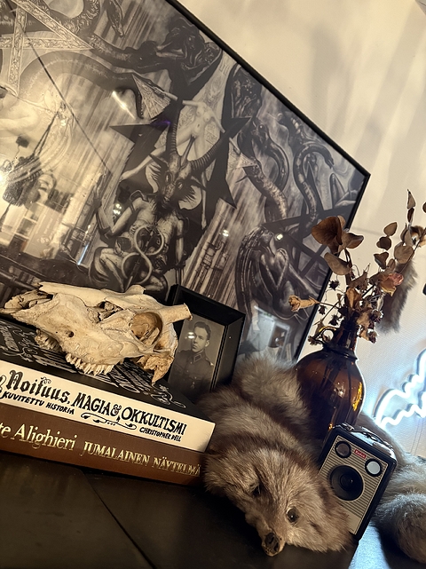 - Imin internetistä itseeni paljon goottilaisia vaikutteita ja aloin haaveilla luiden, taksidermiataiteen ja kallojen keräilystä kokoelmiini. Mielestäni edellä mainituissa sisustuksen teemoissa on viehättävää ja kunnioittavaa jatkuvuutta myös kuoleman jälkeen.