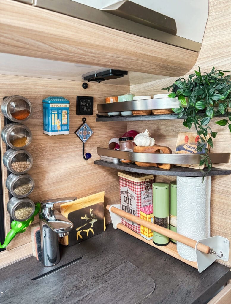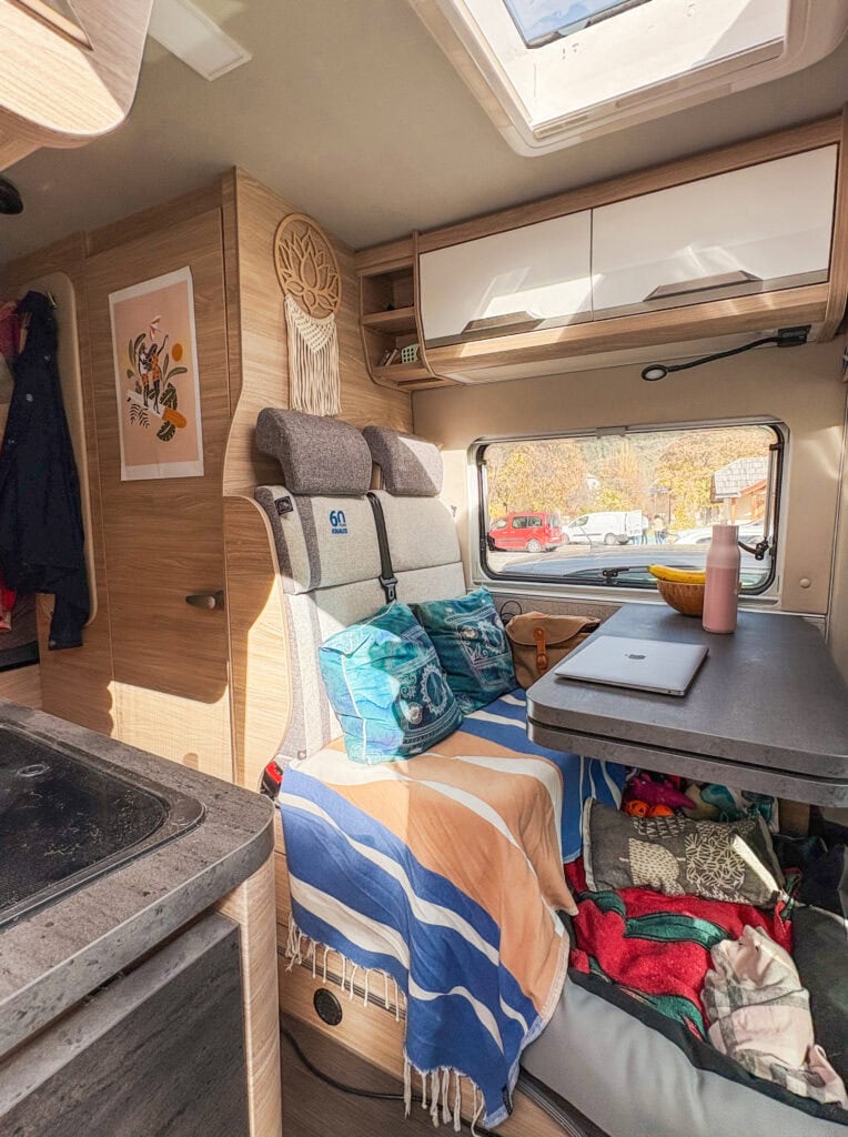 – Olemme asuneet uudessa retkeilyautossamme vasta reilut pari kuukautta ja takana on hyvin hektinen syksy, joten monet sisustusprojektit ja persoonallisuutta luovat yksityiskohdat ovat saaneet vielä toistaiseksi odottaa itseään.