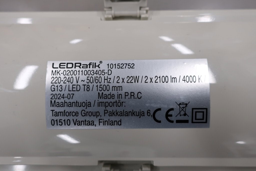Valaisimen mukana toimitetuista LED-putkista puuttuvat kaikki merkinnät. Lamppuihin ja valaisimiin ei ole siis merkitty, miten päin ne tulisi asentaa valaisimeen. Näin ollen lampun voi vahingossa syöttää niin, että verkkosyöttö on oikosulussa. Lampun väärin asentaminen voi aiheuttaa tulipalo- ja sähköiskuriskin.