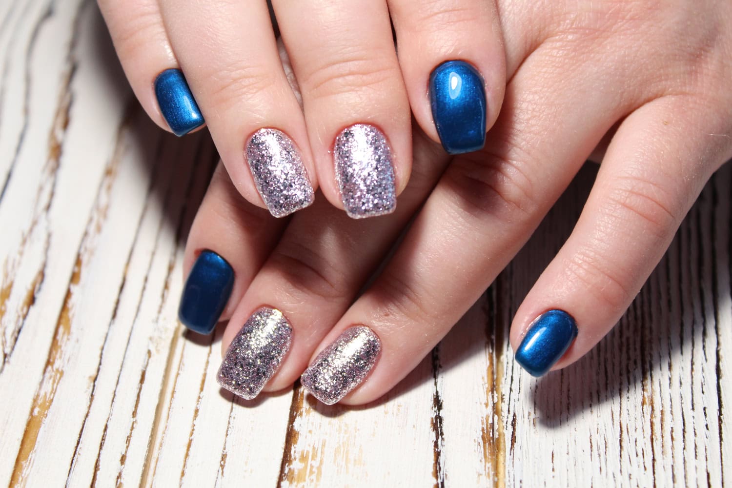 Koristele kesäkynnet nopeasti ja vaivattomasti perinteisellä glitter-kynsilakalla. Voit halutessasi jättää osan kynsistä eri värisiksi.