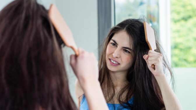 – Tiheäpiikkinen harja voi olla altistava tekijä. Voit kokeilla hieman harvempaa harjaa, Douglas jatkaa.