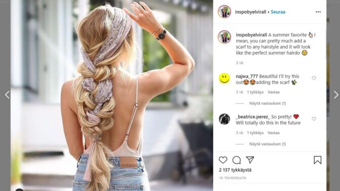 Ruotsalaisella Elvira Jonssonilla on Instagramissa yli 30 000 seuraajaa, joiden iloksi hän jakaa erilaisia hiustutorialvideoita.