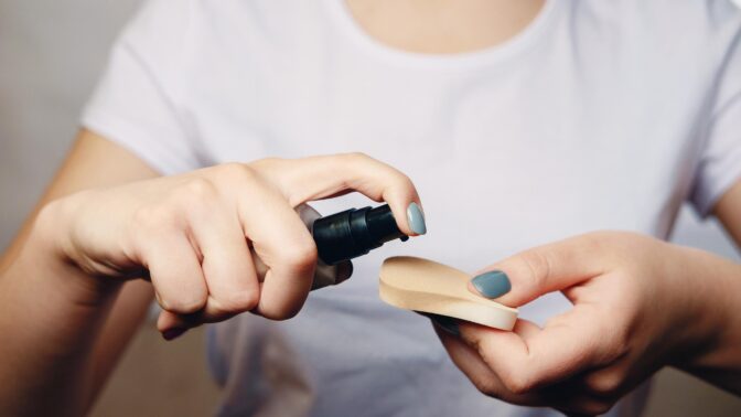 – Sanoisin, ettei kannata valita liian nestemäistä tuotetta, sillä se valuu tulehtuneelta alueelta nopeasti pois, meikkitaiteilija Ruby Hammer toteaa.