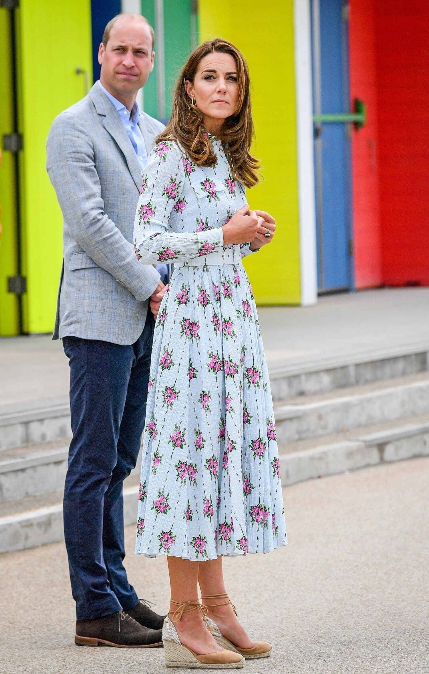 Middletonin yllä nähtiin kaunis valkoinen kukkamekko, jonka helma ulottui pohkeeseen asti. Rentoutta tyyliin toivat kiilakorkokengät, joissa oli kauniit punotut yksityiskohdat. Pariskunta saapui tilaisuuteen maskit kasvoillaan. Middletonin asu on täydellinen kopioitavaksi niin kesän juhliin kuin siistiin toimistotyyliinkin.