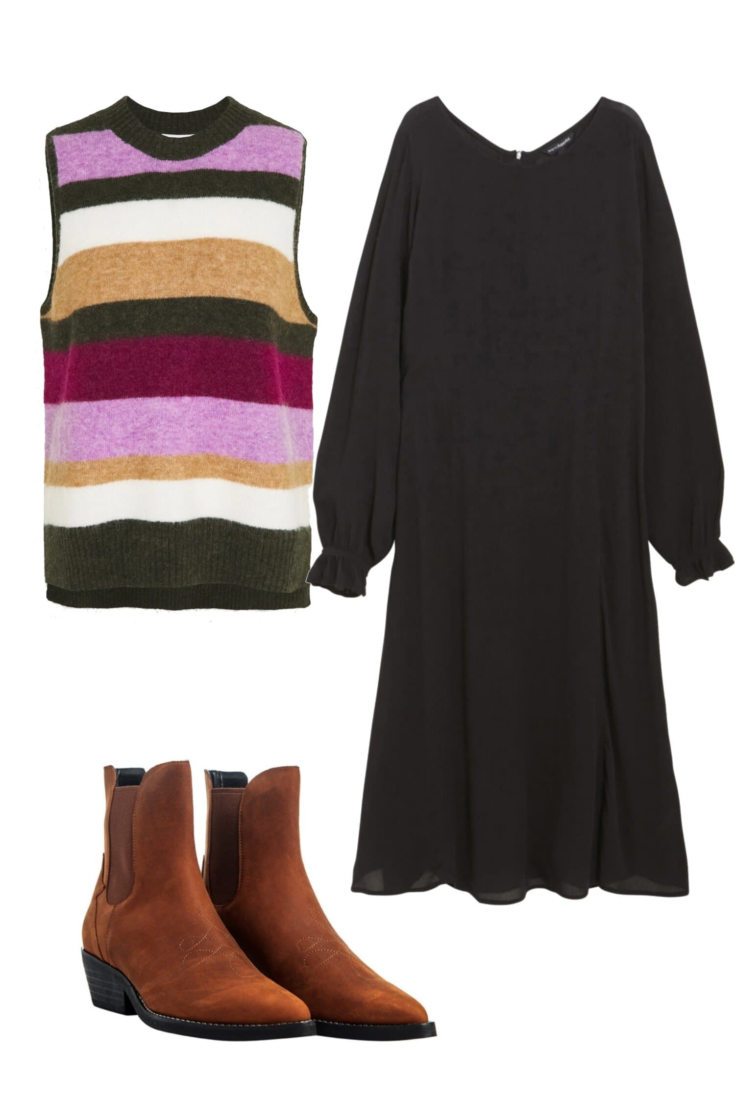 Piristä klassista mekkotyyliä: kerrosta neuleliivillä.