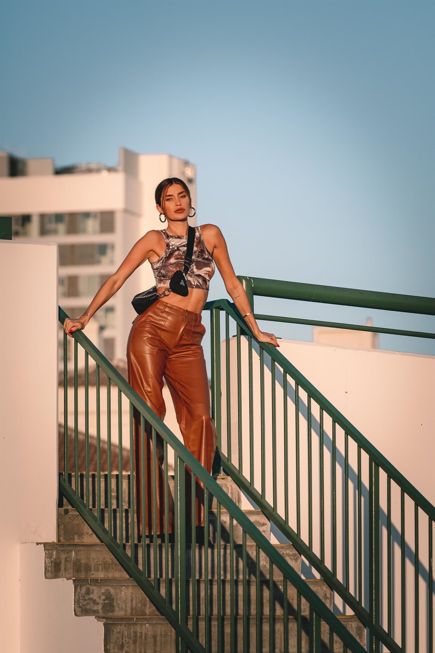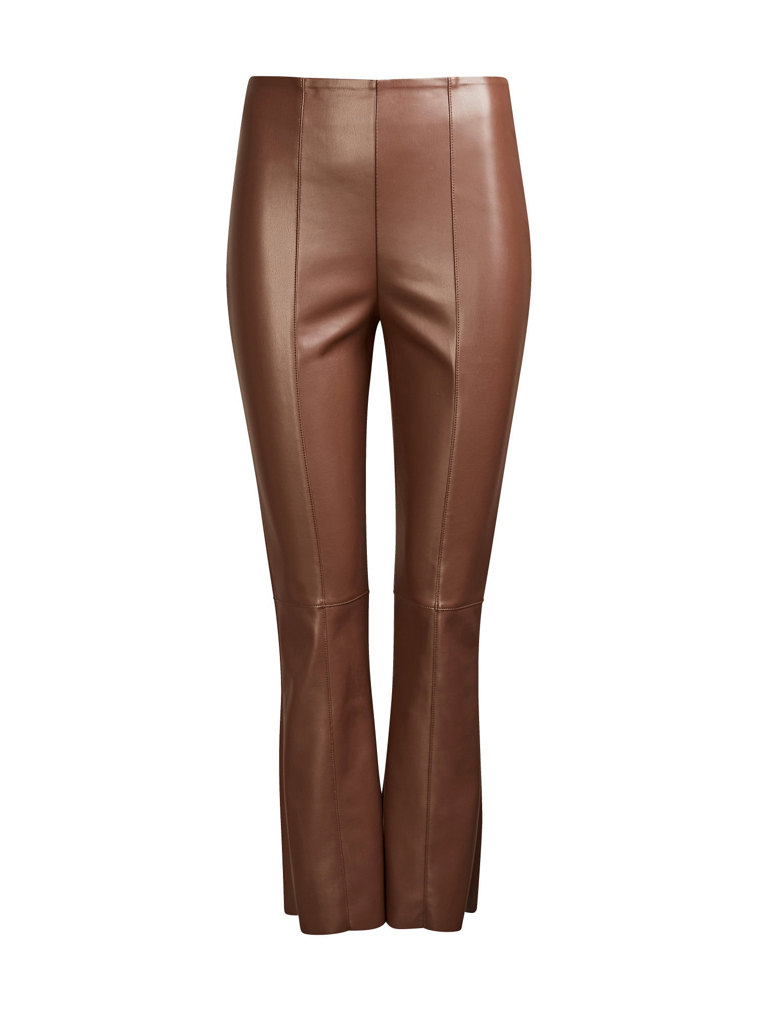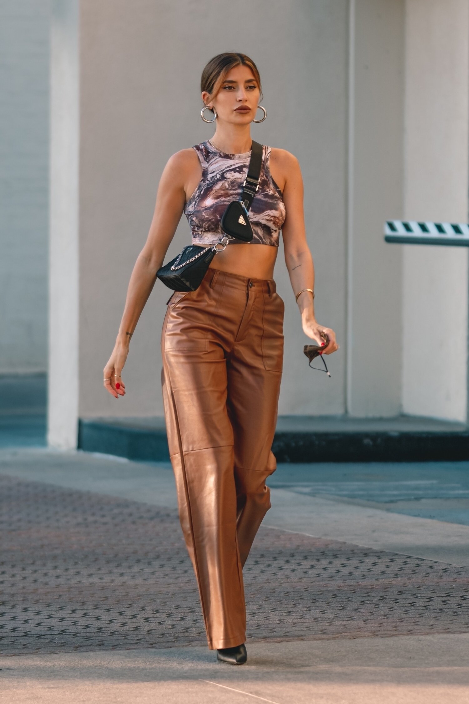 Trendiin on hurahtanut myös tv-tähti ja muotivaikuttaja Nicole Williams, 32, joka kuvattiin näyttävässä asussaan Los Angelesissa tällä viikolla. Williams oli yhdistänyt ruskeat korkeavyötäröiset nahkahousut napapaitaan ja Pradan olkalaukkuun. Naisen housutyylissä yhdistyivätkin kaksi kauden trendiä: nahka ja leveät lahkeet. Nahkahousut tuovat hetkessä asuun ripauksen rock-henkeä, mutta toisaalta ne näyttävät ihanalta myös muhkean neulepaidan kanssa.