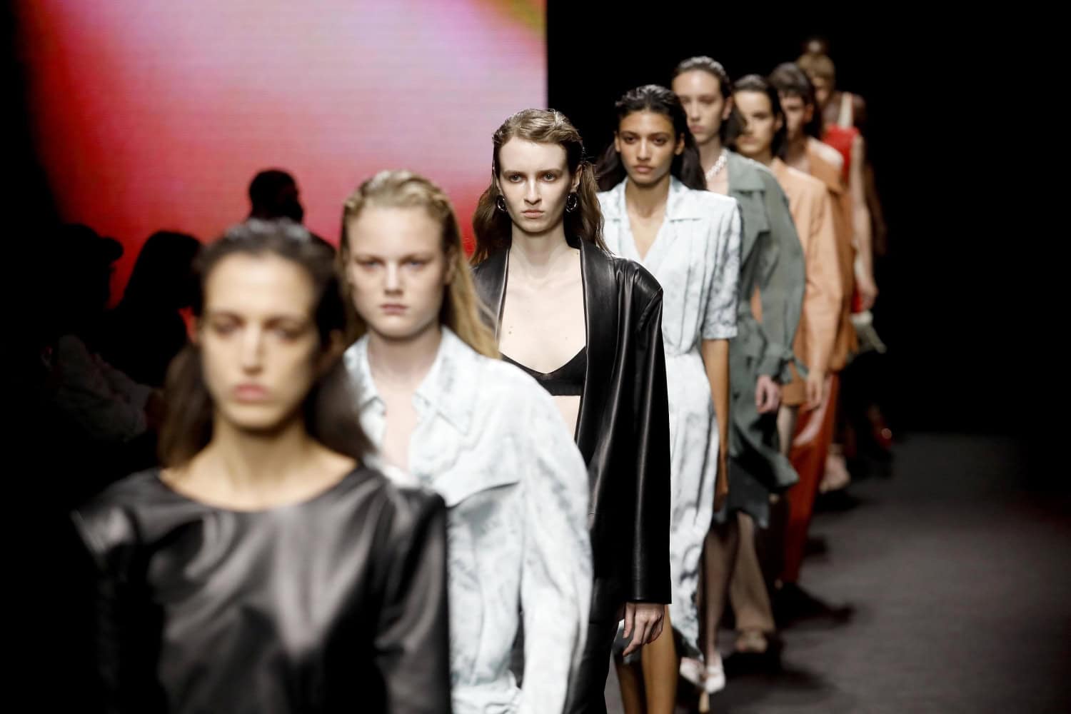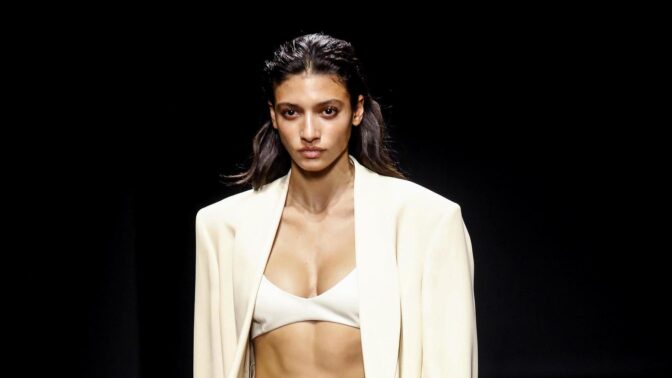Rintsikkatopin yhdistäminen housupukuun on helpoin tapa ottaa tyyli haltuun. Rintaliivitoppeja nähtiin kuitenkin myös pitkien mekkojen päälle puettuna, jolloin ne toivat yksinkertaiseen asuun todellakin kertaheitolla twistiä. Toinen vahva elementti DROMen näytöksessä oli nahka. Mallistossa nähtiin myös nahkainen rintaliivitoppi. Tältä näyttää kevään 2021 muoti.