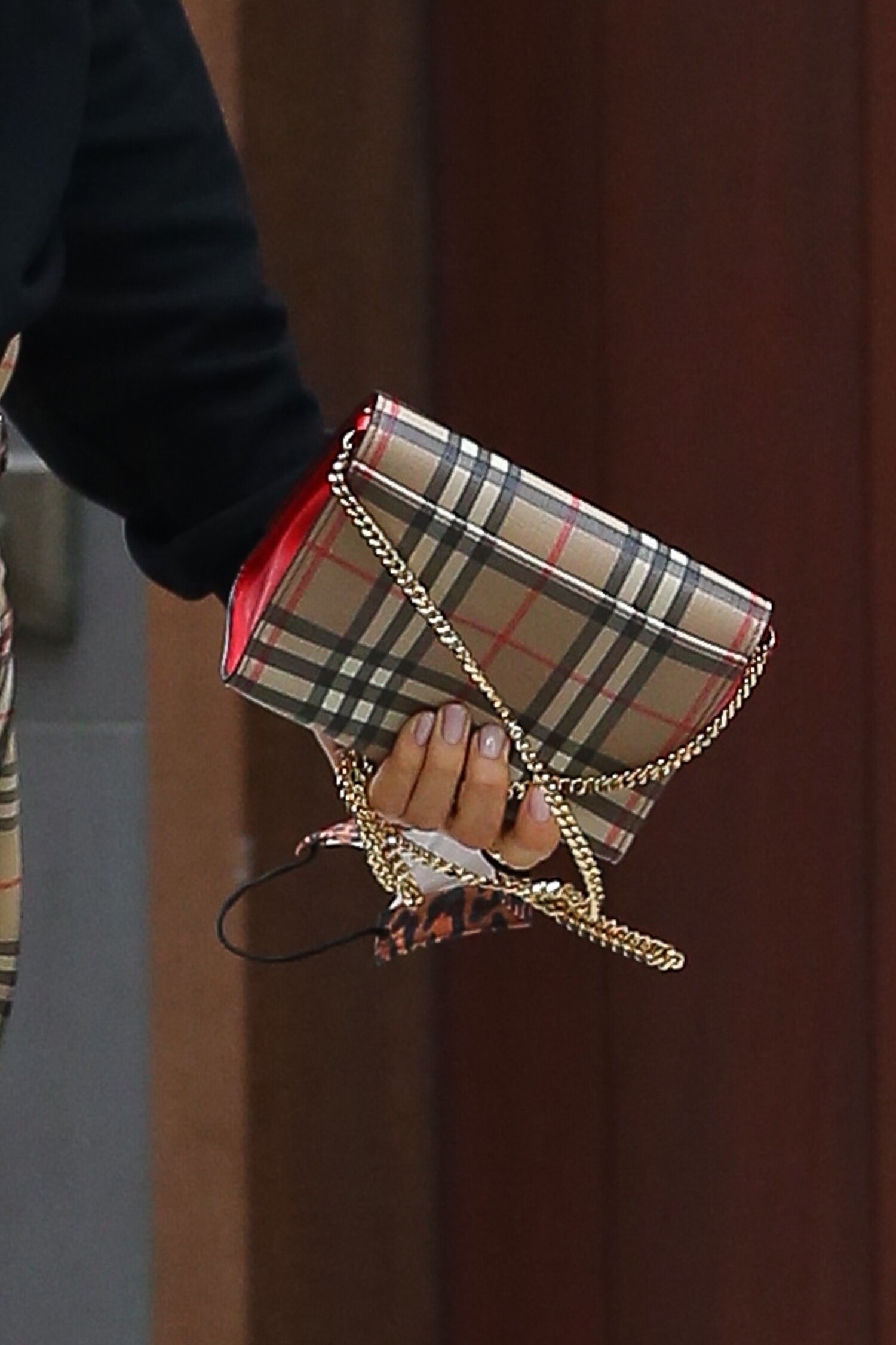 Shayk oli pukeutunut minimittaiseen ruutuhameeseen, jossa komeili ryhdikkäänä Burberryn klassikkokuosi. Samaa kuosia nähtiin niin hameessa kuin laukussakin – tuttu tyyliniksi 2000-luvulta sekin.