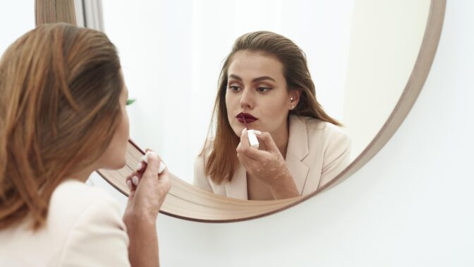 Monotonisessa meikissä luomiväri, huulipuna sekä poskipuna valitaan sävy sävyyn.