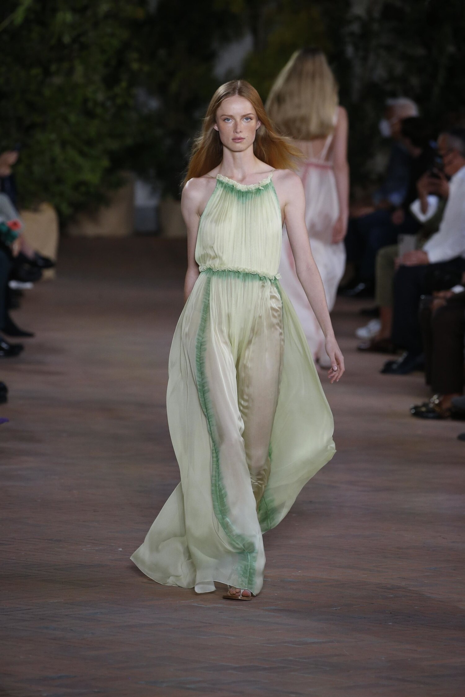 Ole oman elämäsi Helinä-keiju. Vihreän sävyjen kirjo näkyy kevään mallistoissa: minttua, limeä, neonvihreää, jalokivivärejä… Alberta Ferrettin näytöksessä hempeä vihreä yhdistyi kauniisti laskeutuvaan materiaaliin.