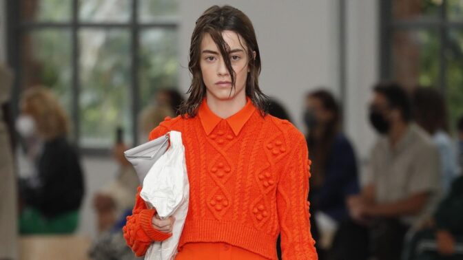 Rauhoittavat sinisen sävyt ovat pinnalla ja sopivat täydellisesti ajattomaan vaatekaappiin. Kuva Acne Studiosin näytöksestä.