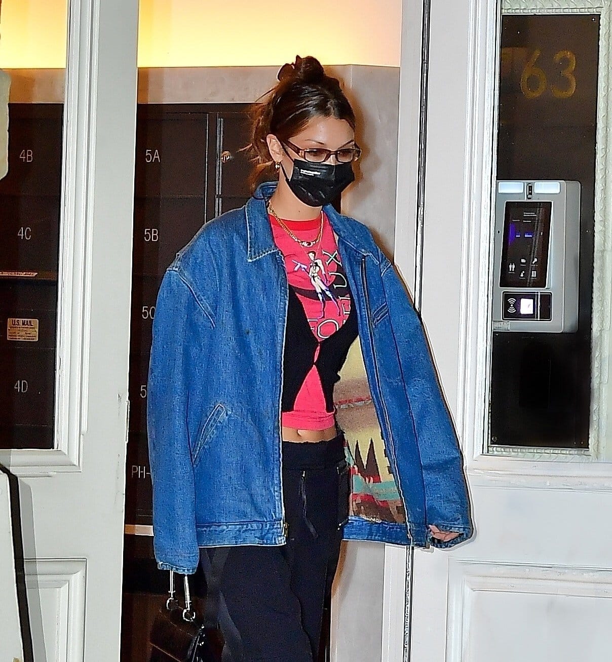 Kerroimme hiljattain näyttävästä silmämeikkitrendistä, joka on tuttu 2000-luvun taitteesta. Myös rohkeat minimekot tekevät paluutaan ja ovat tuttuja nollarimuodista. Hadidin yllä nähtiin printtipaidan päälle puettu vartalonmyötäinen neuletakki. Lyhyet, ribbineuletakit olivat iso hitti takavuosina, ja myös silloin alle valittu toppi tai t-paita sai näkyä. Hadidin tyylissä myös napapaita henkii samaa nostalgiaa.