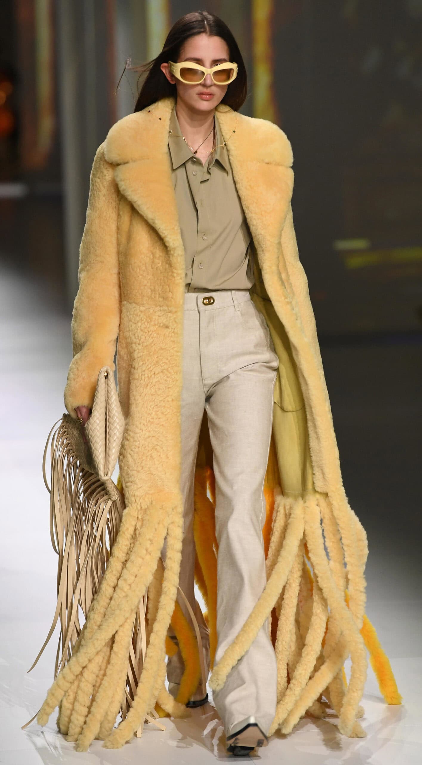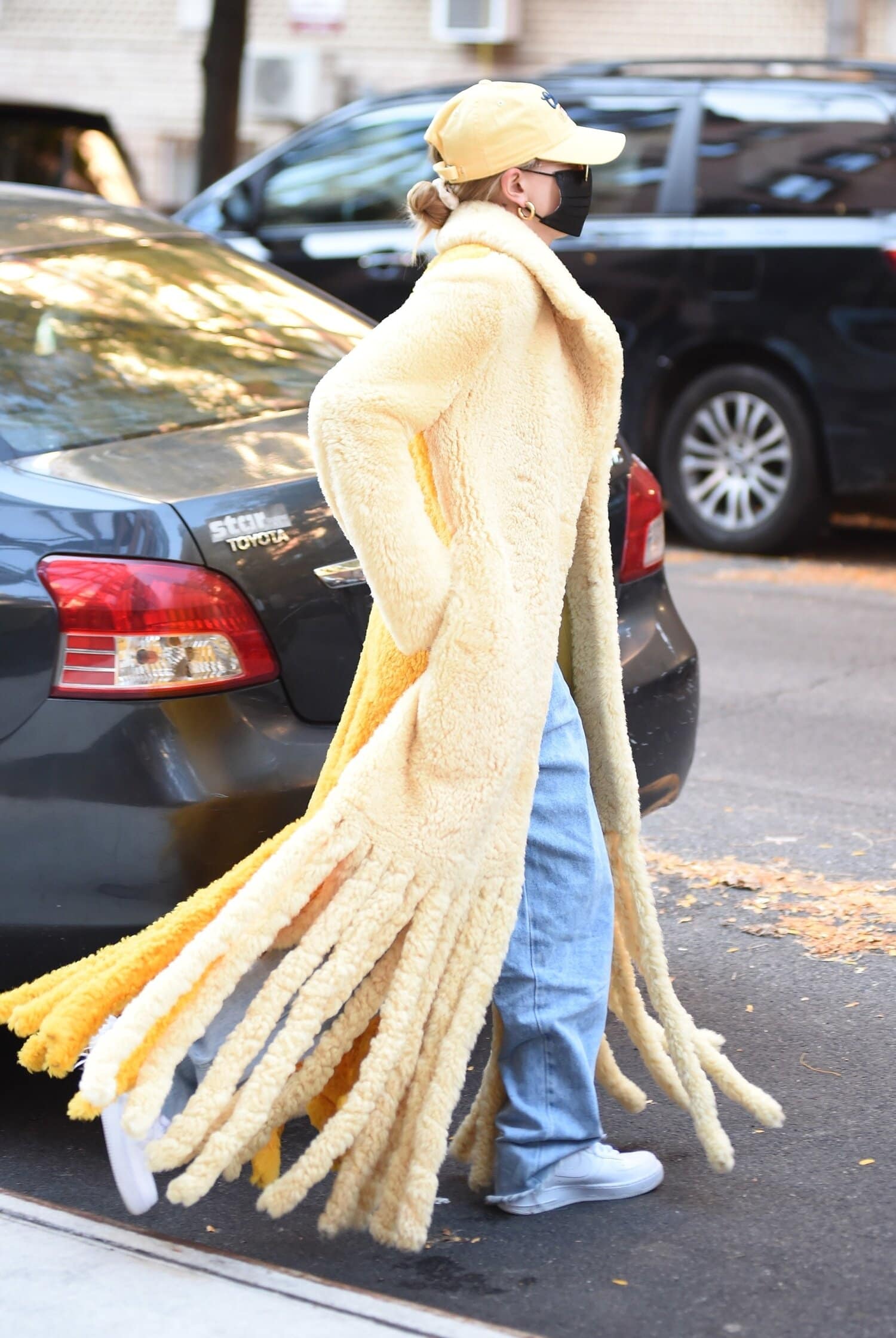 Malli Hailey Bieber, 23, ottaa suvereenisti haltuun kauden villeimmätkin trendit. Tänä vuonna haastavanakin pidetyt pitkät hapsut ovat ottaneet vallan muodin aallonharjalla. Hapsuja on nähty paitsi asusteissa, myös vaatteissa. Muun muassa nousussa olevan muotibrändi Bottega Venetan mallistossa nähtiin lukuisia hapsuvaatteita. Yksi näyttävimmistä oli keltainen teddytakki, jonka maata viiltävät hapsut eivät jää keneltäkään huomaamatta.